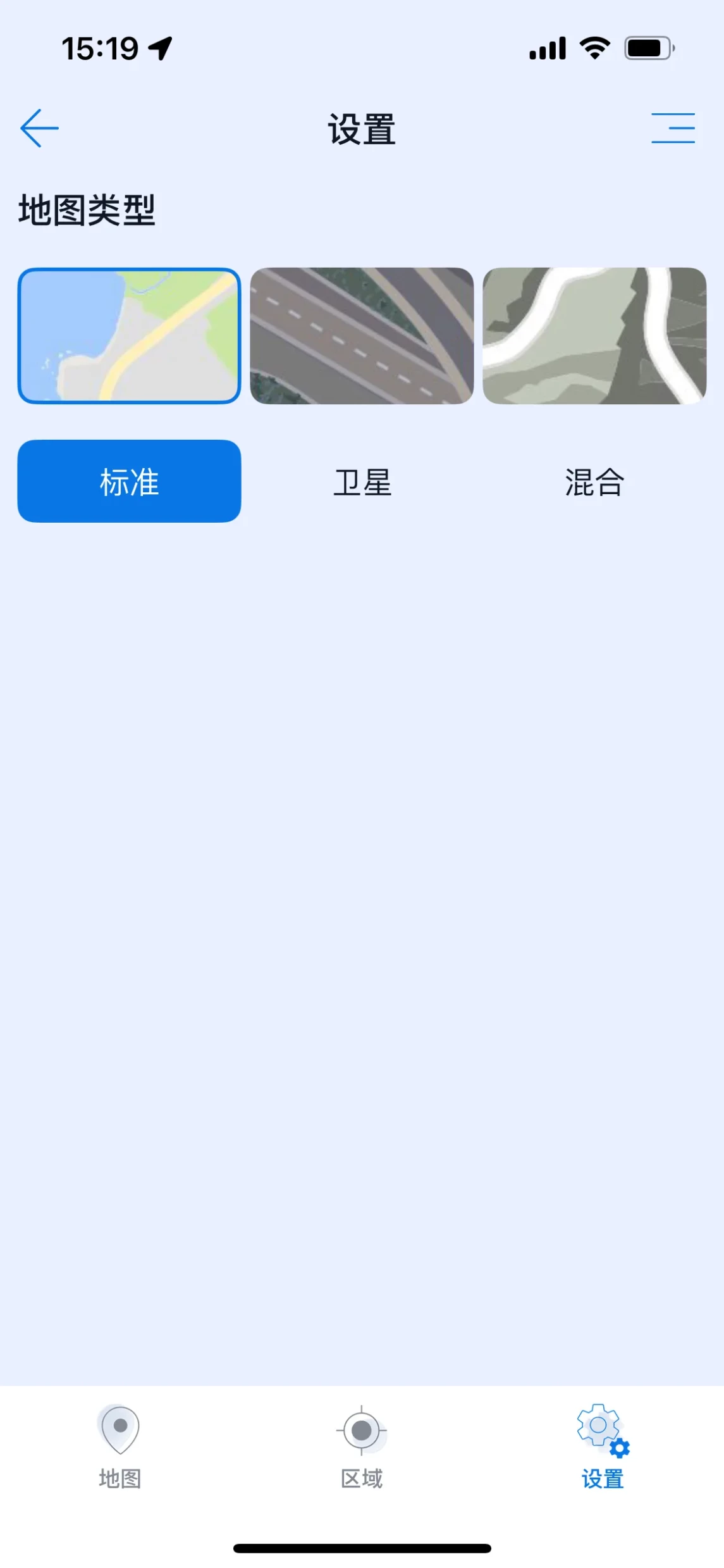 在这里,您可以更改地图显示类型。可用的模式包括:“标准”、“卫星”、“混合”。
