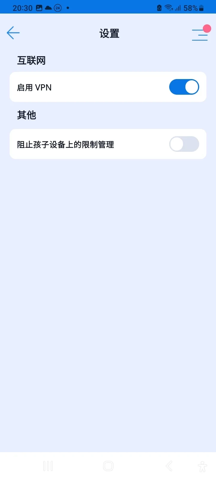 功能“锁定设备上的限制管理”。默认情况下,儿童设备上的限制(包括限制、定时锁定)可以由家长设备和儿童设备更改。但是,您可以启用“锁定设备上的限制控制”功能,以禁止从儿童设备更改限制。